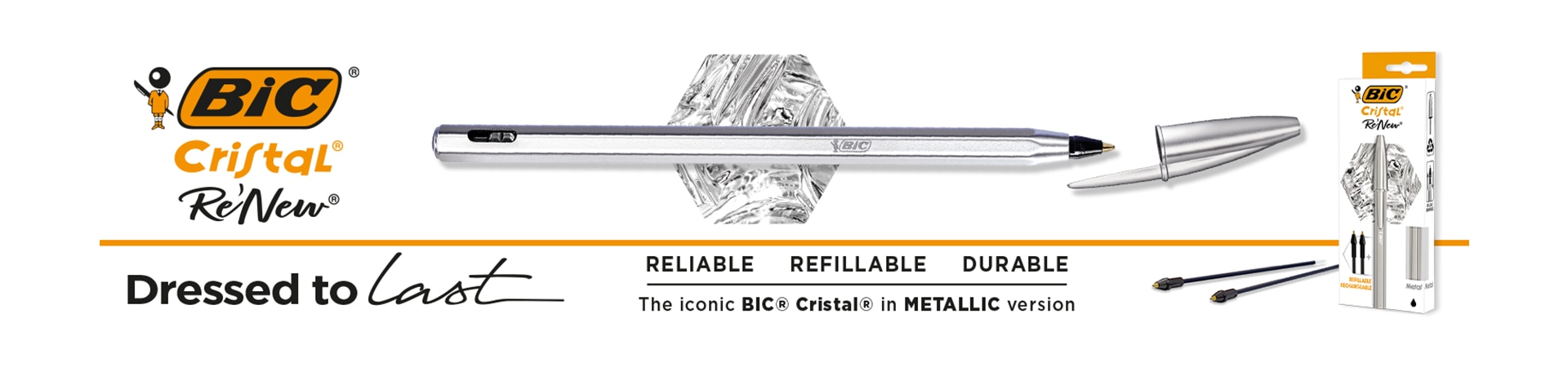 BIC Cristal Re’New is sold with 2 refills in a FSC certified cardboard packaging